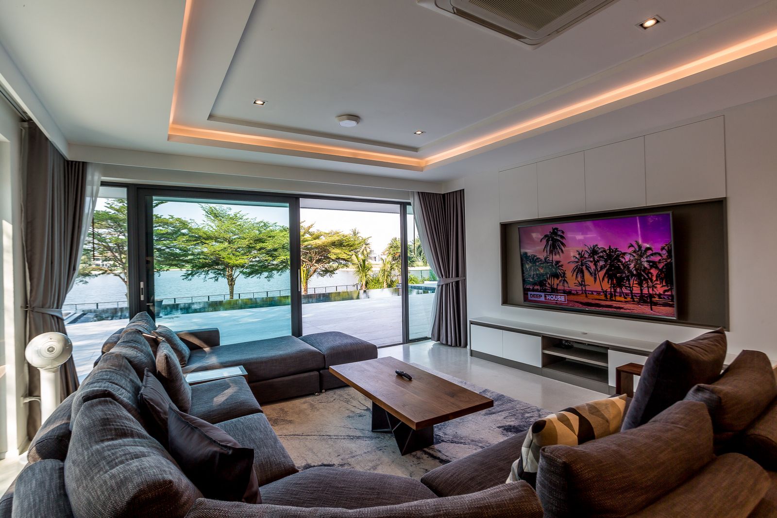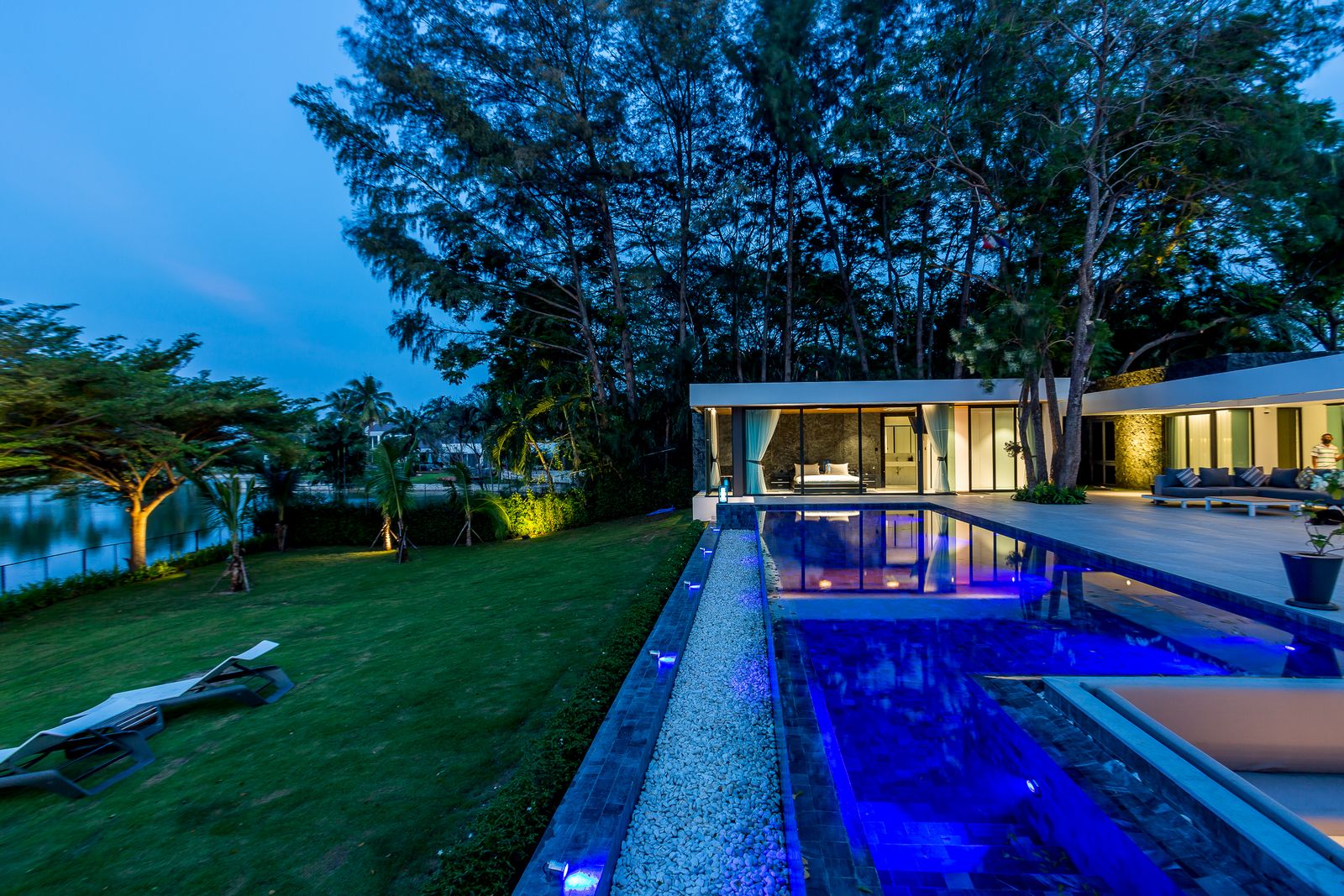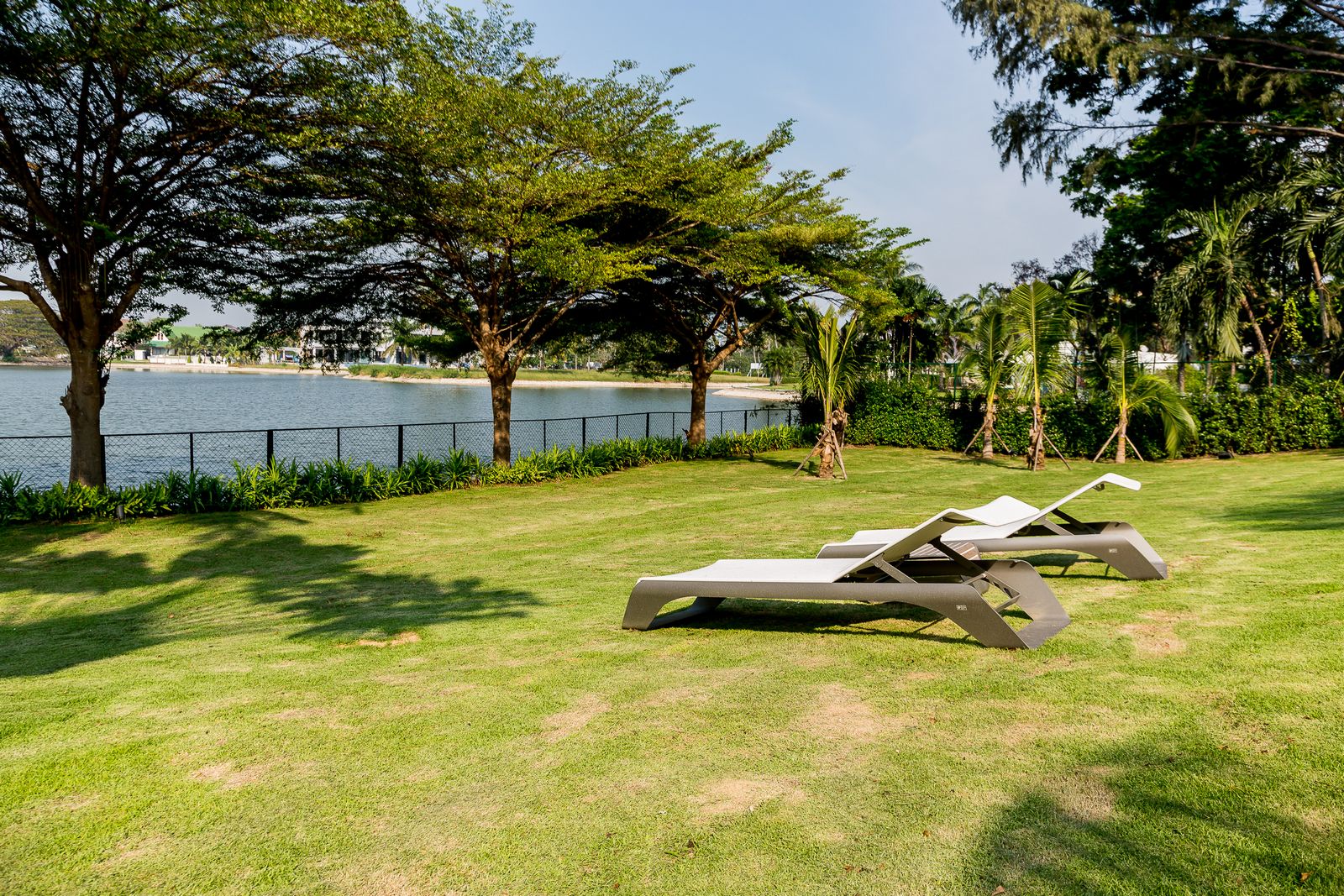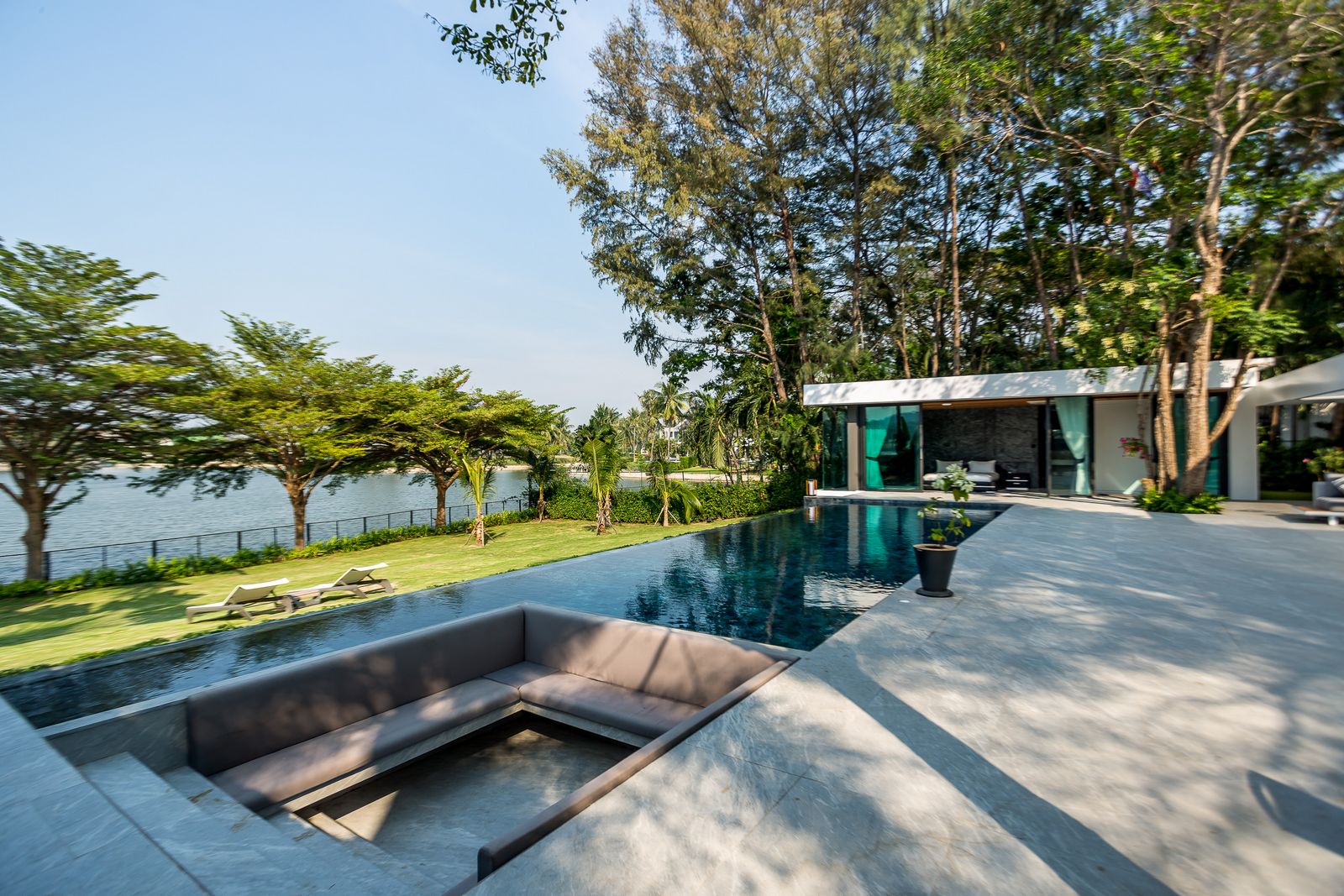 The Villa is built overlooking the lake on almost 1 Rai of Land, offering 3 bedrooms each with dressing rooms, 4 bathrooms, a dedicated home office, huge entertainment terrace with BBQ Area, Sunk in Sala, Large Swimming Pool with infinity edge overlooking the garden and lake, a maid/driver room with own WC and Kitchen, a dedicated laundry room, covered car park, all in a green setting. A luxury lakefront pool villa for Rent or sale, part of the estate sales and best homes for sale in all of Cha Am.