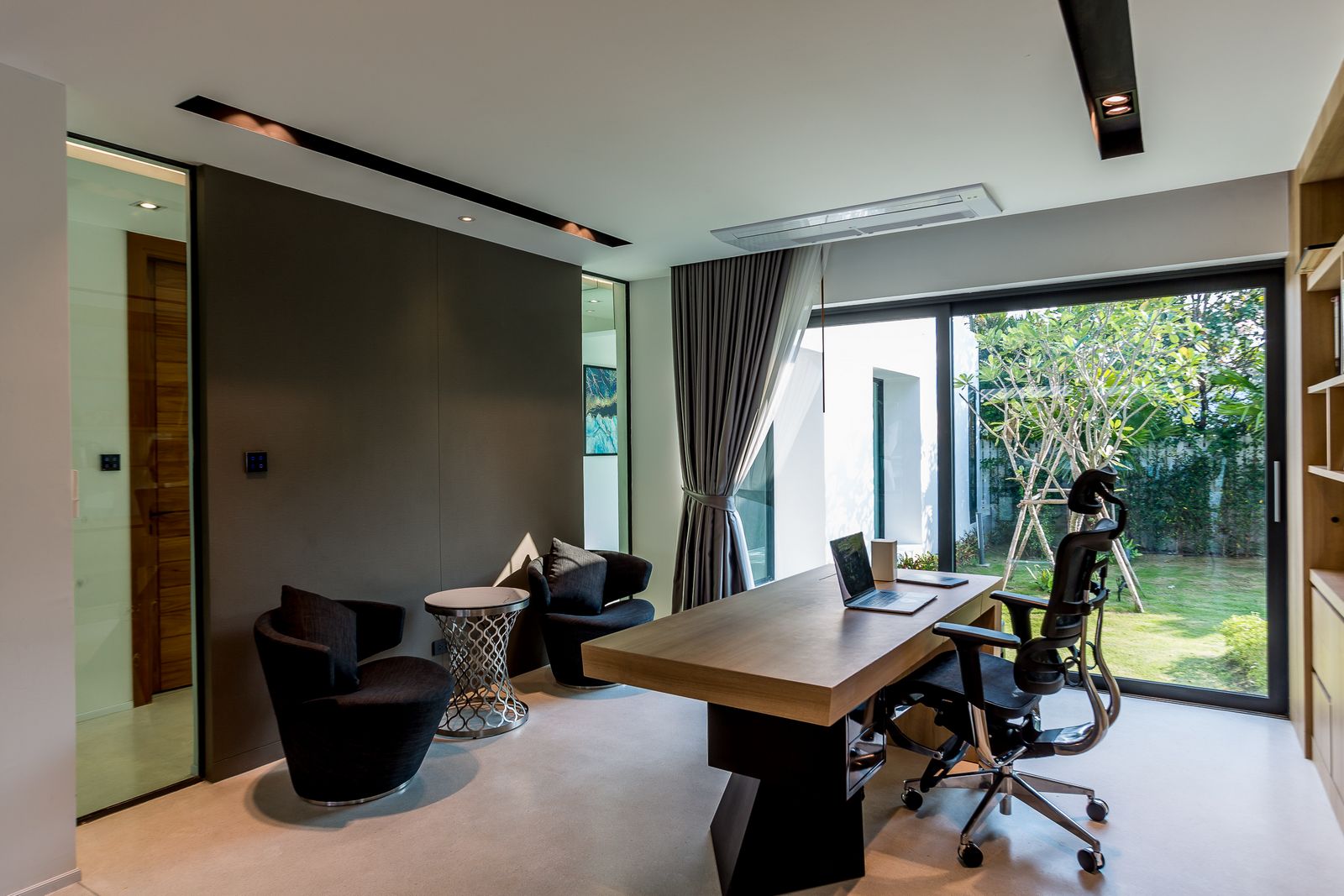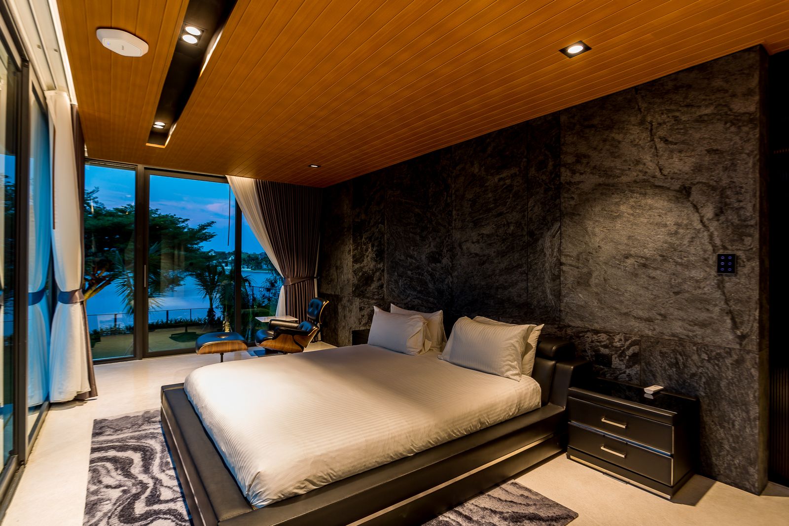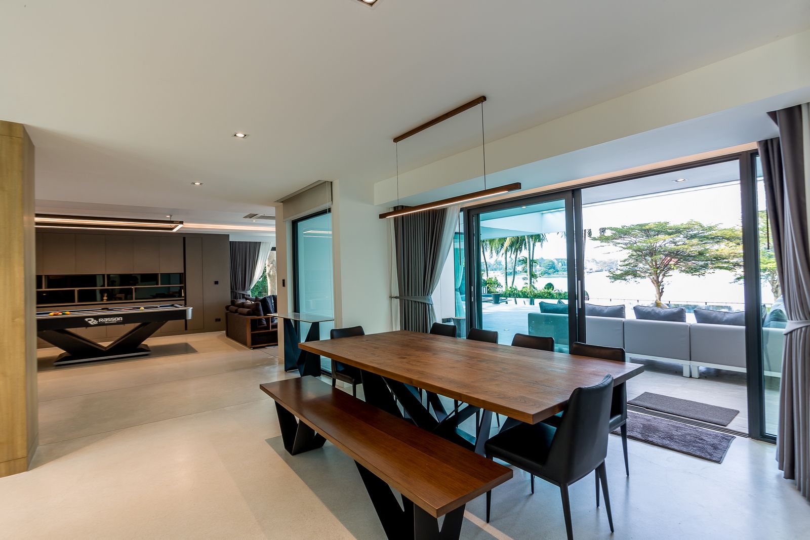 The Villa is built overlooking the lake on almost 1 Rai of Land, offering 3 bedrooms each with dressing rooms, 4 bathrooms, a dedicated home office, huge entertainment terrace with BBQ Area, Sunk in Sala, Large Swimming Pool with infinity edge overlooking the garden and lake, a maid/driver room with own WC and Kitchen, a dedicated laundry room, covered car park, all in a green setting. A luxury lakefront pool villa for Rent or sale, part of the estate sales and best homes for sale in all of Cha Am.