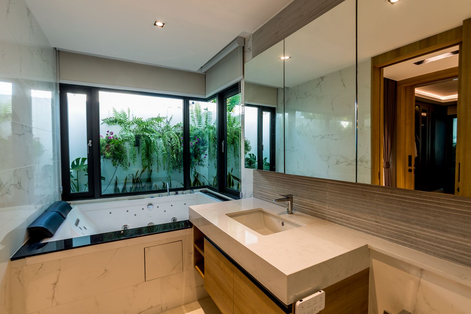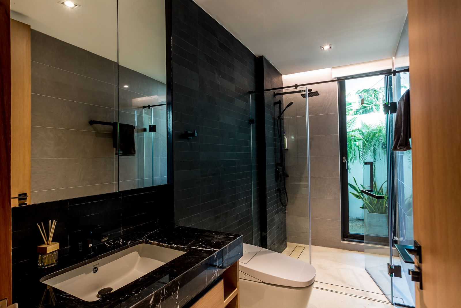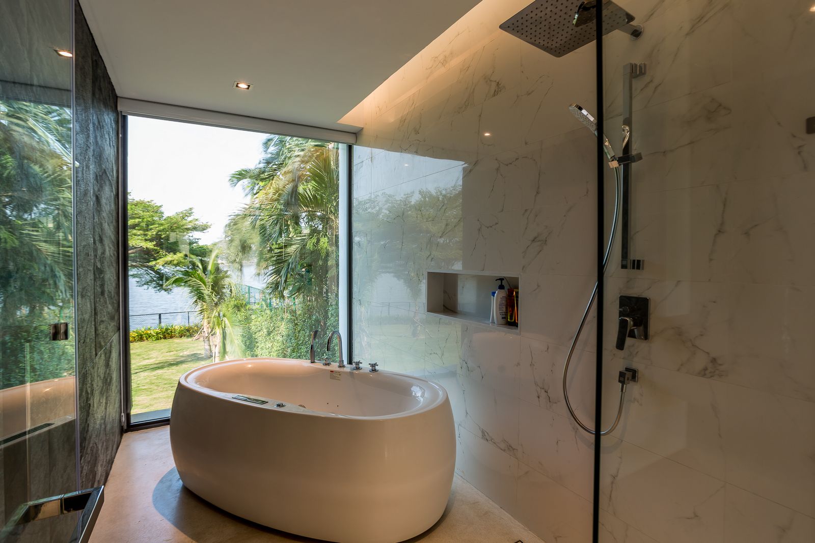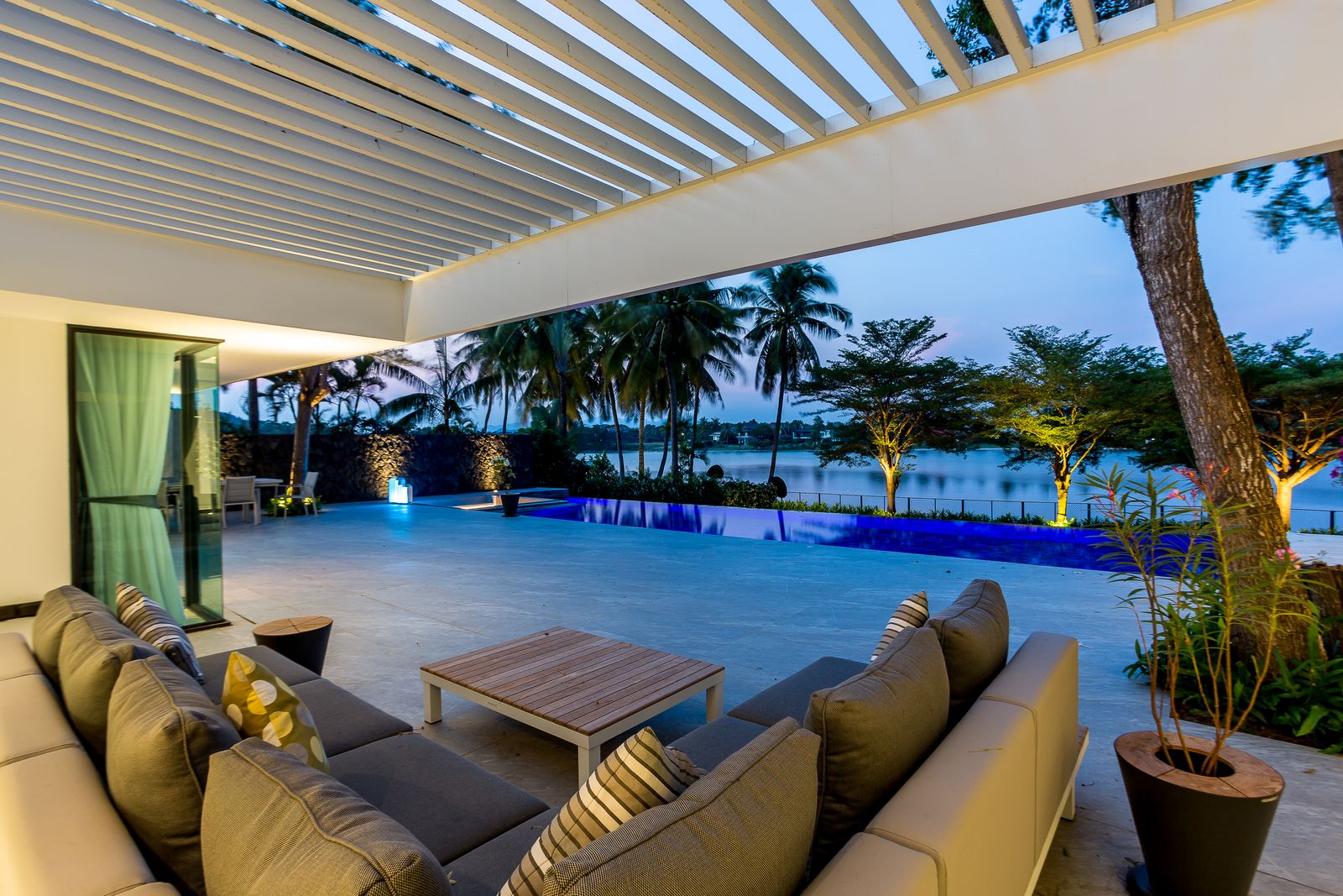 The Villa is built overlooking the lake on almost 1 Rai of Land, offering 3 bedrooms each with dressing rooms, 4 bathrooms, a dedicated home office, huge entertainment terrace with BBQ Area, Sunk in Sala, Large Swimming Pool with infinity edge overlooking the garden and lake, a maid/driver room with own WC and Kitchen, a dedicated laundry room, covered car park, all in a green setting. A luxury lakefront pool villa for Rent or sale, part of the estate sales and best homes for sale in all of Cha Am.