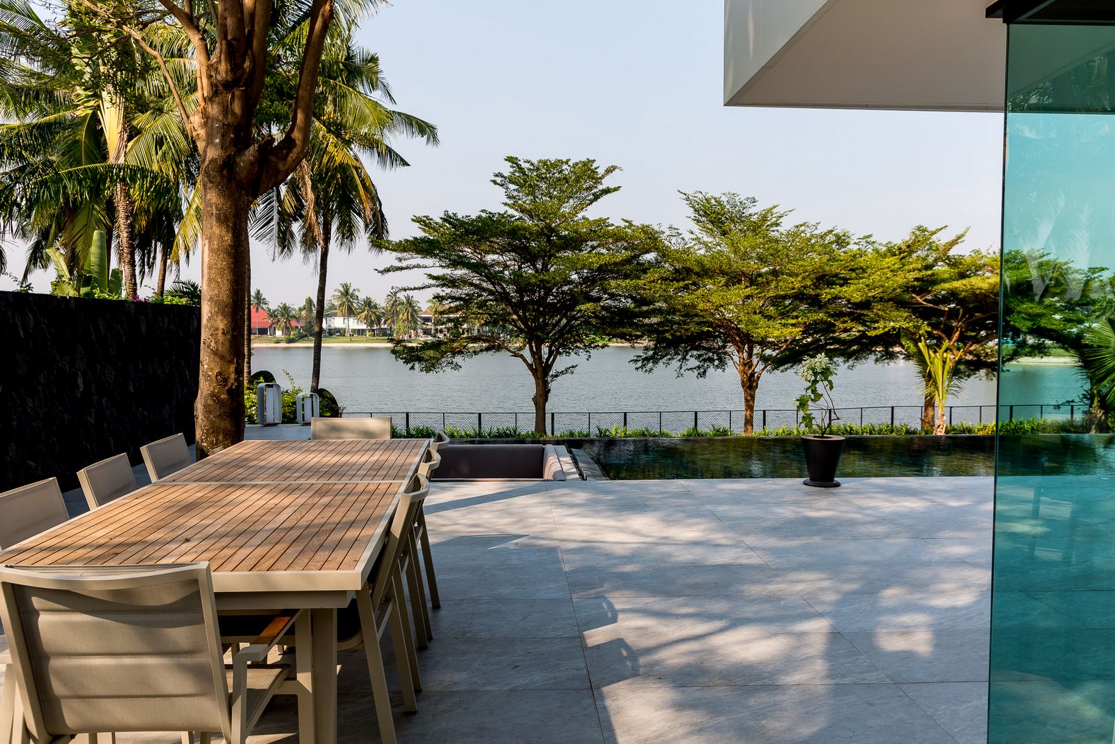 A dedicated bar counter with a sink and plugs created to serve the BBQ Area and Outdoor Dining. Another outdoor area with large Outdoor Lounge for evening cocktails never fail to impress